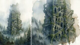 近年、この村には説明のつかない「バグ」のような存在が現れました。 湖の霧の最深部に隆起した、五角形の巨大な石造りの塔「ペンタ(Penta)」です。 村からは霧に阻まれてその姿をはっきりと捉えることはできません。「指のような影が見える」と噂されるその塔は、村の記憶を収蔵する場所ではなく、物理法則を無視した「不条理の垂直空間」としてそこに在ります。