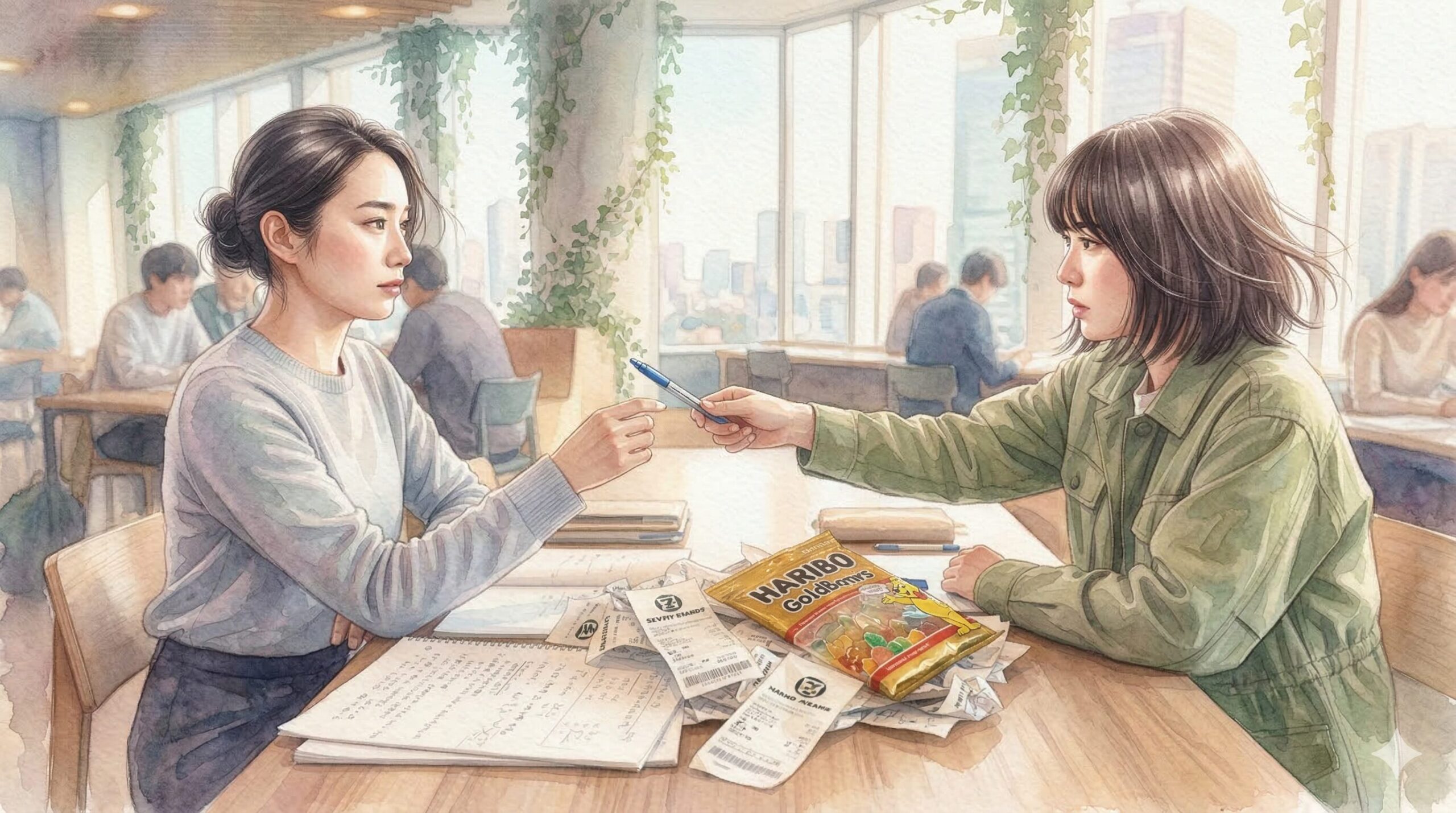 花野:それだと、こすれて下のレシートが破れちゃうかもしれないでしょ。発掘は丁寧にやらないとダメなの。