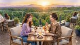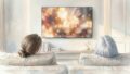 月面基地「満月亭」の展望ラウンジ。地球と月周回軌道を見渡せる大きな窓がある。