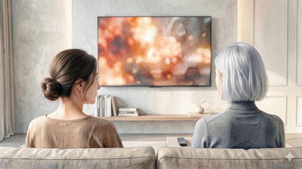 突き放すような口調だったが、静の右手は無意識のうちにリモコンへ伸びていた。ボタンを押し、テレビの音量を下げる。静かになった部屋には、エアコンの微かな駆動音だけが残った。
