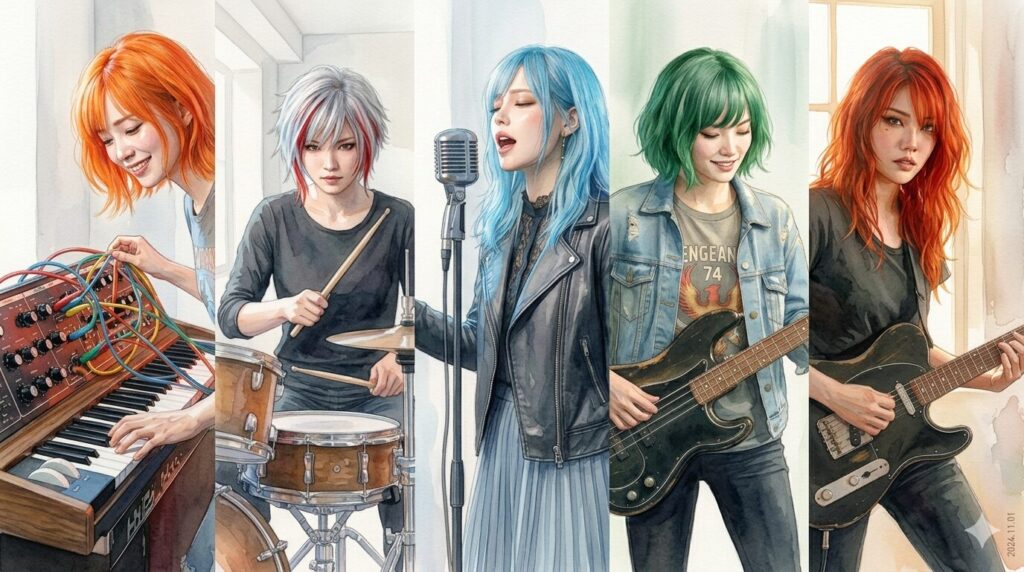 ここあん村を拠点とする5人組ガールズバンド。繊細な絶望を轟音で包み込むオルタナティブなサウンドが特徴。歌詞はやや後ろ向きで被害妄想が強めだが、叩き出される音は極めて熱い。村のライブハウス「ガーデンガガガーデン」を根城に、日常の不条理をエキセントリックに鳴り響かせる。